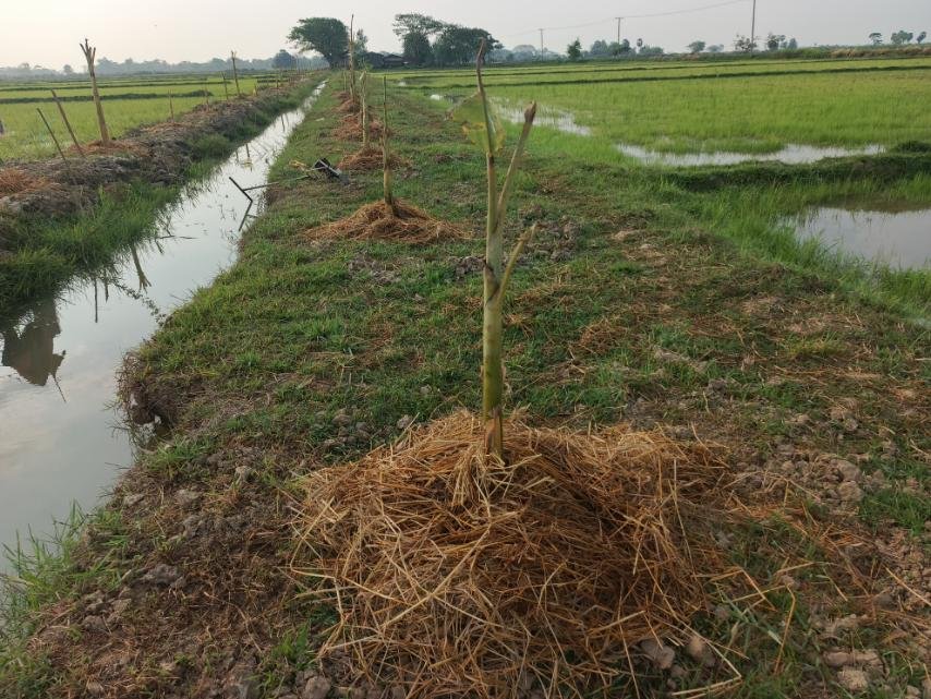 ဖေဖော်ဝါရီ ၂၄ ရက်နေ့ ၂၀၂၅ တွင် စိုက်ပျိုးပြီးငှက်ပျောပင်များ၏ ခြေရင်းအား ကောက်ရိုးဖြင့် အုပ်ပေးခြင်းလုပ်ငန်းကို ဆောင်ရွက်ခဲ့ပါသည်။ ဤလုပ်ငန်းသည် မြေသာစိုထိုင်းဆကို ထိန်းသိမ်းပေးပြီး နေရောင်ခြည်တိုက်ရိုက်မကျရောက်စေရန် ကာကွယ်ပေးခြင်းဖြစ်ပါသည်။ လုပ်ဆောင်မှုမှတ်တမ်းဓာတ်ပုံများကိုလည်း ဆက်လက်ကြည့်ရှုနိုင်ပါသည်။