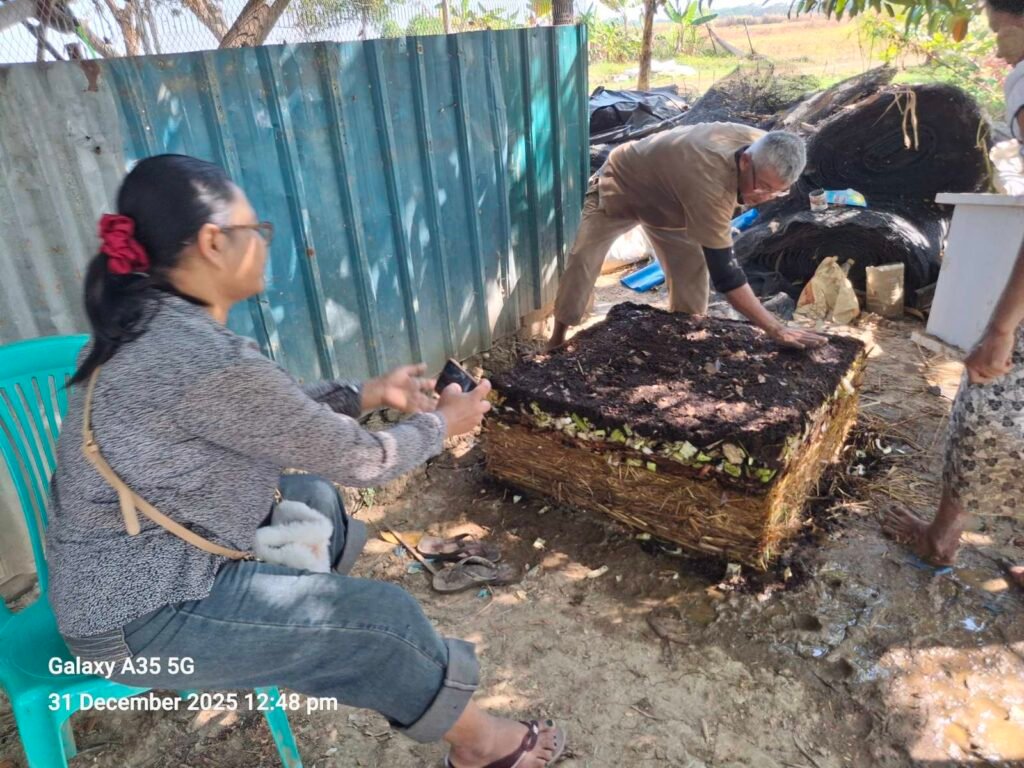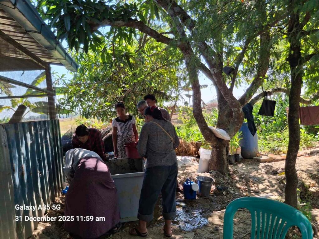 ၃၁ ဒီဇင်ဘာ လ ၂၀၂၅ မှို စိုက်ပျိုးနည်း စနစ် မိတ်ဆက်ခြင်း-ဦးတင်အောင် ဒေါ် သွယ်သွယ်အေး K2N အဖွဲ့အား ၃ ပေ ပတ်လည် ဘောင် ဖြင့် နမူနာ ပြသခြင်း။